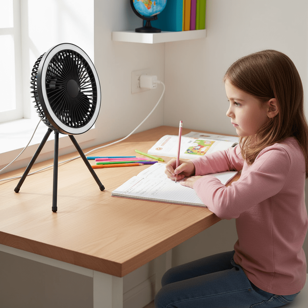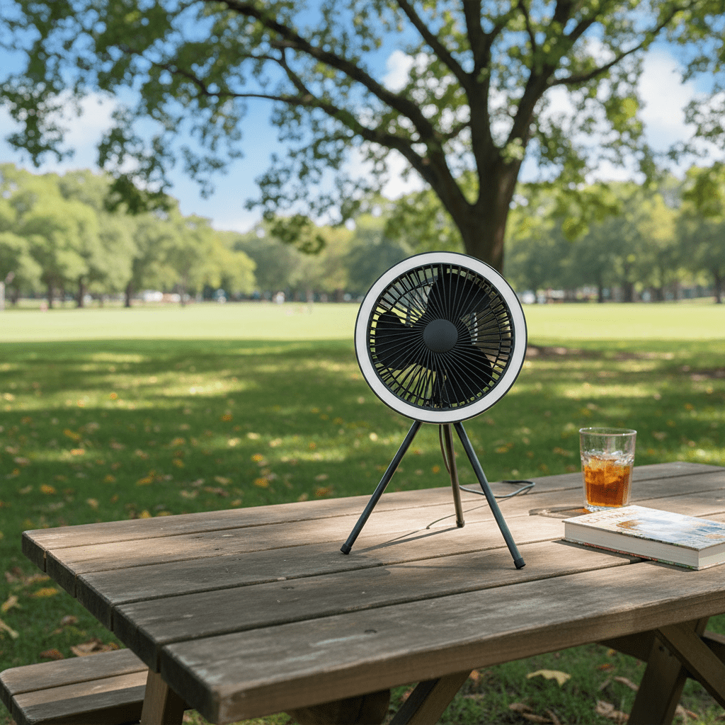 Weighing just 700 g and measuring 243 × 226 × 355 mm, the fan features a removable triangular bracket for stability and easy transport. Quiet operation under 55 dB, strong airflow, and remote control make the H12 perfect for both outdoor adventures and everyday cooling needs.