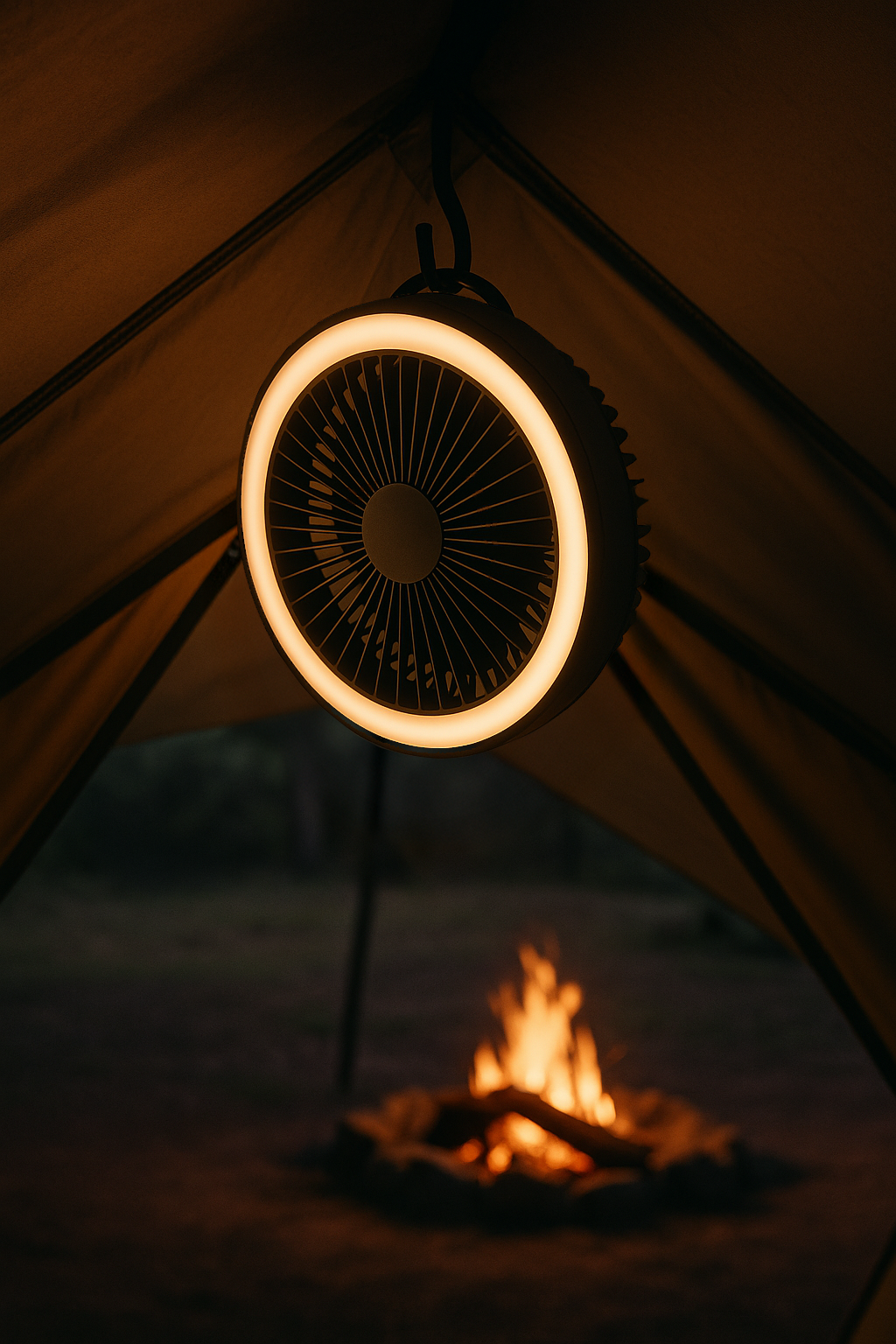 The H12 Triangle Bracket LED Camping Fan is a versatile outdoor companion that combines powerful airflow with ambient lighting. Featuring a durable aluminum alloy and ABS plastic body, this portable fan is ideal for camping, picnics, or indoor use. Its 7-inch, 6-blade design spins at 2300 RPM, delivering adjustable wind speeds from 2–5.2 m/s for cooling comfort in any setting.